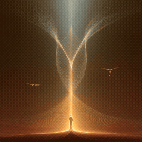 When the higher‑self organizing principle of grace is allowed to flow through human thought, choice, or action, something new happens in the field. A current rises from below through effort and intention, and a current descends from above through grace. Where they meet, wings begin to form.