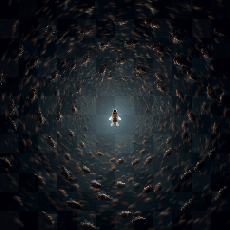 In a dream, the bees show me what surrender feels like in the body. I watch the swarm move as a single higher‑orchestrated flow—a divine dance—and I see my own individuated movement beside it, jerky and ungraceful.
