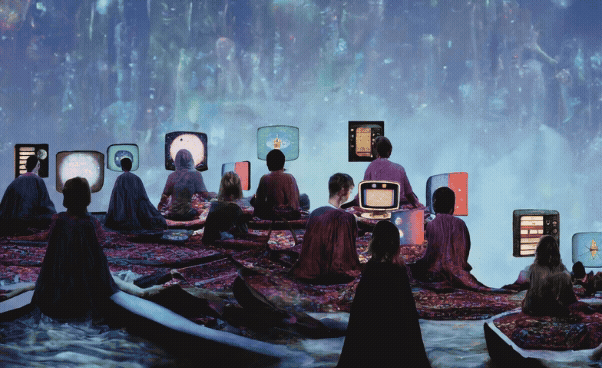 We are all in an alien movie theatre seated on our own cosmic tapestries. Each of us is watching a private screening of our reality. I peek over to other people’s screens, but my Oversoul warns me: “There are messages meant only for others.” I understand that they’re only going to show me what I can handle and what is meant for me. Anything else is too much for my stream of consciousness. “Keep your attention on your own reality tunnel.”
