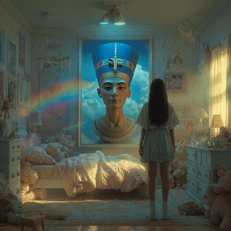 My body becomes my childhood bedroom. Nefertiti appears and asks me to show her around. A poster of my 5th-grade crush is on the wall, and she asks me to tell her all about him. I laugh and remind her that she is a Queen—why on Earth would she be interested in a schoolgirl’s stupid crush? She responds, “Because every little thing about you—everything you’ve ever loved and everything you’ve ever hated—makes up who you are. And because your identity matters.”